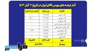 تالارهای بورس کالای ایران در روز یکشنبه ۶ آبان ماه میزبان معامله ۹۰۴هزار و ۸۱۳ تن انواع کالا و محصول بود.