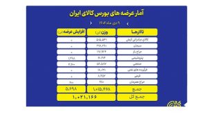 تالارهای بورس کالای ایران امروز سهشنبه ۹ دی ماه میزبان عرضه یک میلیون و ۲۱ هزار و ۱۶۶ تن انواع محصول است.