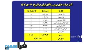 ادامه ...در آخرین روز مهرماه رقم خورد؛ عرضه یک میلیون و ۱۷۳ هزار تن محصول در بورس کالا