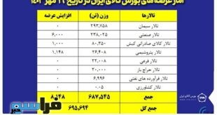 تالارهای بورس کالای ایران در روز دوشنبه ۱۶ مهرماه میزبان معامله ۴۹۹هزار و ۲۱۱ هزار تن انواع کالا و محصول بود.