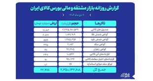ادامه ...ارزش معاملات 6 دی ماه بازار مشتقه و مالی بورس کالا ۲۲ همت شد