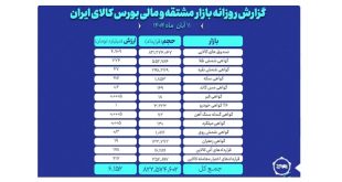 ادامه ...عبور ارزش معاملات روز گذشته بازار مشتقه و مالی بورس کالا از ۶ همت