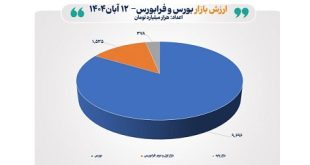 مجموع ارزش بازارهای سهام ایران، شامل بورس تهران، فرابورس و بازار پایه، در معاملات امروز (دوشنبه ۱۲ آبان ۱۴۰۴) از مرز ۱۱ هزار و ۵۰۰ همت گذشت.