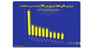 ادامه ...از نظر ارزش معاملات؛ ۱۰ شرکت برتر بورس کالا معرفی شدند