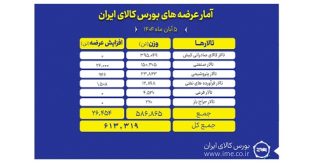 تالارهای بورس کالای ایران امروز یکشنبه ۴ آبان ماه میزبان معامله ۲ میلیون و ۲۰ هزار و ۵۹۹ًتن محصول بود.