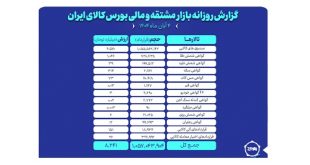 ادامه ...ارزش معاملات 4 آبان ماه بازار مشتقه و مالی بورس کالا ۸.۲ همت شد