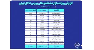 ادامه ...ارزش معاملات روز گذشته بازار مشتقه و مالی بورس کالا ۷ همت شد
