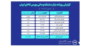 ادامه ...ارزش معاملات 19 مهرماه بازار مشتقه و مالی بورس کالا ۱۰ همت شد