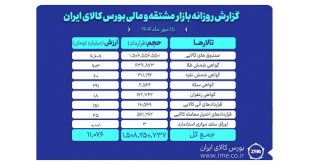 ادامه ...ارزش معاملات روز گذشته بازار مشتقه و مالی بورس کالا ۱۱ همت شد