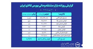 ادامه ...ارزش معاملات روز گذشته بازار مشتقه و مالی بورس کالا ۹ همت شد