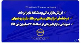در نیمه نخست امسال ارزش بازار مالی و مشتقه بورس کالا با جهش ۴۳۵ درصدی نسبت به نیمه نخست سال گذشته، بیش از ۵ برابر شد.