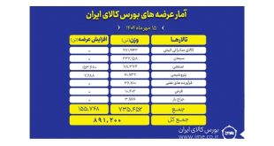 تالارهای بورس کالای ایران امروز سه شنبه ۱۵ مهر ماه میزبان عرضه ۸۹۱ هزار و ۲۰۰ تن انواع محصول است. بیشترین حجم عرضه امروز از آن تالار صادراتی است.
