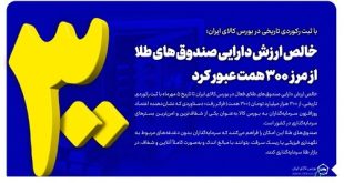 خالص ارزش دارایی صندوقهای طلای فعال در بورس کالای ایران تا تاریخ ۵ مهرماه با ثبت رکوردی تاریخی، از ۳۰۰ هزار میلیارد تومان (۳۰۰ همت) فراتر رفت.