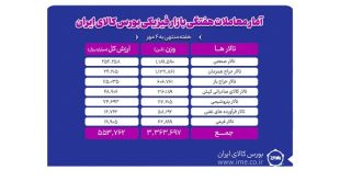 ادامه ...هفته گذشته ۳ میلیون و ۳۶۴ هزار تن محصول در بورس کالا دادوستد شد
