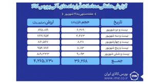 ادامه ...ثبت ارزش ۴۲۷ میلیارد تومانی بازار آتی بورس کالا در هفته گذشته