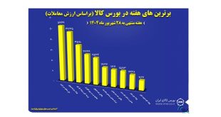 ادامه ...معرفی ۱۰ شرکت برتر بورس کالااز نظر ارزش معاملات