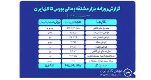 ادامه ...ارزش معاملات 23 شهریور بازار مشتقه و مالی بورس کالا ۵.۶ همت شد