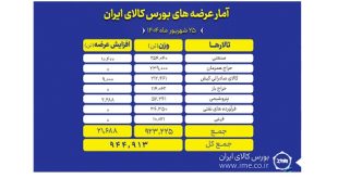تالارهای بورس کالای ایران امروز سه شنبه ۲۵ شهریور ماه میزبان عرضه ۹۴۴ هزار و ۹۱۳ تن انواع محصول است.