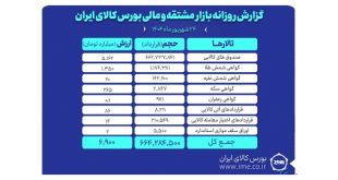 روز گذشته در بازار مشتقه و مالی بورس کالای ایران ۶۶۴ میلیون و ۲۸۴ هزار و ۵۰۰ قرارداد به ارزش ۶ هزار و ۹۰۰ میلیارد تومان منعقد شد.