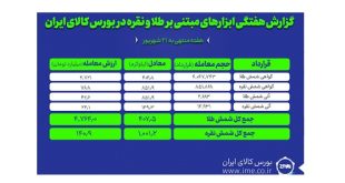 بررسی عملکرد ابزارهای مبتنی بر طلا و نقره در بورس کالای ایران نشان میدهد که در هفته گذشته بیش از یک تن کیلوگرم شمش نقره و ۴۰۷ کیلوگرم شمش طلا در بازار گواهی سپرده و آتی معامله شد.