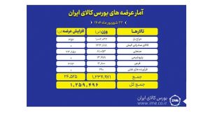 تالارهای بورس کالای ایران در در اولین روز هفته (شنبه ۲۲ شهریور ماه) میزبان عرضه یک میلیون و ۲۵۹ هزار و ۴۹۶ تن انواع محصول است.