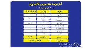 تالارهای بورس کالای ایران امروز سه شنبه ۱۸ شهریور ماه میزبان عرضه یک میلیون و ۱۲۰ هزار و ۵۷ تن انواع محصول است.