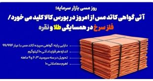 معاملات قرارداد آتی گواهی سپرده کاتد مس با سررسید اسفند ماه امسال از امروز ۵ آذرماه در بورس کالای ایران راهاندازی می شود