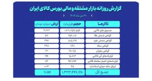 روز گذشته در بازار مشتقه و مالی بورس کالای ایران بالغ بر یک میلیارد و ۳۲۳ میلیون قرارداد به ارزش ۱۱هزار میلیارد تومان منعقد شد.