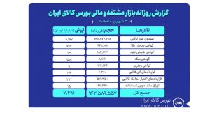 ادامه ...عبور ارزش معاملات روز گذشته بازار مشتقه و مالی بورس کالا از ۷.۴ همت
