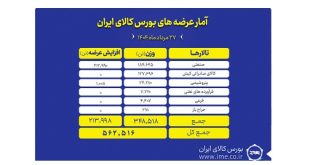 ادامه ...امروز در بورس کالا؛ ۵۶۲ هزار تن انواع محصول روی میز فروش می رود